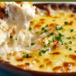 Joe’s Crab Shack Crab Dip is a rich and creamy appetizer featuring tender lump crab meat blended with a savory mix of cream cheese, mayonnaise, sour cream, and a blend of seasonings. Baked until bubbly and golden, this dip is perfect for serving warm with crackers, toasted baguette slices, or fresh vegetables, making it an ideal crowd-pleaser for any gathering.