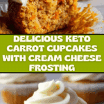Delicious and moist Keto Carrot Cupcakes made with almond and coconut flours, sweetened with monkfruit/erythritol, and topped with a creamy, smooth cream cheese frosting. Perfect for a low-carb, gluten-free dessert that satisfies your sweet tooth without derailing your keto lifestyle.