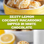 These Lemon Coconut Macaroons combine the tropical sweetness of coconut with a bright, zesty lemon flavor, creating a delightful treat that’s both chewy and refreshing. Finished with smooth white chocolate, they make an elegant yet simple dessert perfect for any occasion.