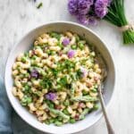 - Serve and Garnish: Garnish the salad with chive flowers if available. Serve immediately for the best vibrant green color, or store in a sealed container in the refrigerator for up to four days for flavors to meld.