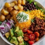 This Loaded Potato Taco Bowl is a hearty and flavorful meal combining crispy roasted potatoes with a savory ground meat and bean mixture, topped with fresh vegetables, cheese, and creamy sour cream. Perfect for a comforting weeknight dinner with a Tex-Mex twist.