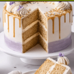 Keywords: London Fog Cake, Earl Grey cake, Lavender cake, Tea-infused cake, Floral dessert, Earl Grey and Lavender, Tea cake, Tea soaking syrup, Cream cheese frosting