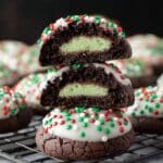 Mint Chocolate Snowball Cookies combine rich cocoa-flavored dough with a surprise mint truffle center, all coated with a smooth white chocolate topping and festive sprinkles. These soft, indulgent cookies are perfect for holiday treats or any special occasion, offering a delightful blend of chocolate and refreshing mint in every bite.