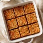 A moist and flavorful carrot cake recipe bursting with finely shredded carrots, warm cinnamon, and nutmeg. This no-frosting carrot cake is perfectly tender, naturally sweet, and easy to make with simple pantry staples. Ideal for breakfast or an afternoon snack, it’s impressive enough for any occasion without the fuss of frosting.