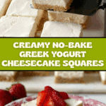 Keywords: no-bake cheesecake, Greek yogurt cheesecake, easy cheesecake dessert, graham cracker crust, frozen cheesecake squares, light cheesecake recipe