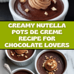 Delight in rich, creamy Nutella Pots de Creme, a luscious French dessert combining velvety chocolate-hazelnut custard with a smooth texture and a hint of vanilla. Perfectly baked in a water bath for a silky finish, these individual custards topped with Nutella whipped cream and crunchy hazelnuts offer an indulgent treat for chocolate lovers.