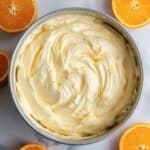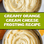 A smooth and fluffy orange cream cheese frosting combining the tangy richness of cream cheese and butter with sweet powdered sugar, brightened by fresh orange zest and orange extract. Perfect for topping cakes, cupcakes, and other baked treats to add a citrusy, creamy flavor.