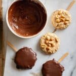 - Coat the Bars: Dip each frozen peanut butter bar into the melted chocolate, ensuring they are well-coated for a delicious chocolate shell.