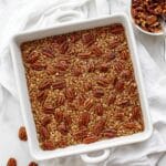 - Make Pecan Topping: In a small saucepan over medium heat or in a microwave-safe bowl, melt the butter and maple syrup together. Stir in the pecans, ensuring they are fully coated with the mixture. Spread the pecan topping evenly over the oatmeal mixture. Smooth it out gently with a spatula.
