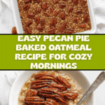 Keywords: pecan pie baked oatmeal, baked oatmeal recipe, gluten-free breakfast, vegan baked oatmeal, cozy breakfast, pecan topping oatmeal
