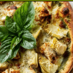 This Pesto Chicken Pizza recipe combines the fresh, vibrant flavors of homemade basil pesto with tender cooked chicken and tangy artichoke hearts on a crispy pre-baked pizza crust. Topped with creamy fontina cheese and baked to golden perfection, this easy-to-make pizza is perfect for a quick weeknight dinner or casual gathering.