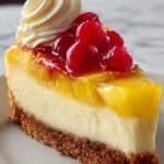 This Pineapple Upside-Down Cheesecake combines the classic charm of a pineapple upside-down cake with the creamy richness of cheesecake. Featuring a graham cracker crust, caramelized pineapple rings with cherries on the bottom, and a smooth cream cheese filling, this dessert is both visually stunning and delectably flavorful, perfect for special occasions or a sweet indulgence.
