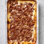 - Layer Toppings: Sprinkle the butterscotch chips evenly over the pumpkin layer, followed by an even layer of toffee bits and then the chopped pecans.