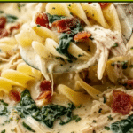 This Quick White Lasagna Soup is a comforting, creamy dish inspired by the flavors of traditional white lasagna but served in a warm, hearty soup form. Featuring tender chicken, pasta, spinach, and a rich broth thickened with half-and-half and cornstarch, it’s topped with a blend of ricotta, Parmesan, and mozzarella cheeses for an indulgent finish. Perfect for a quick weeknight meal, this soup combines classic Italian seasoning with ease and speed.