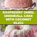 This Raspberry Swirl Snowball Cake is a delightful treat combining moist coconut-infused cake with sweet raspberry swirls. Topped with fluffy whipped cream and toasted coconut, it’s perfect for any special occasion or a cozy dessert at home.