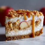 This Salted Caramel Apple Pie Cheesecake combines the smooth, creamy texture of classic cheesecake with the sweet and spiced flavors of apple pie filling and a rich salted caramel topping. A buttery graham cracker crust forms the perfect base, topped with a luscious cream cheese filling, tender cinnamon-spiced apples, and drizzled with homemade salted caramel sauce for an indulgent dessert perfect for any occasion.