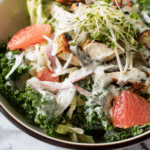 Keywords: San Fran Chicken Salad, yoghurt ranch dressing, kale salad, pickled onions, citrus salad, healthy chicken salad, massaged kale, parmesan salad