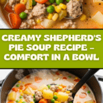 Keywords: shepherd’s pie soup, hearty soup, creamy soup, ground beef soup, comfort food, winter soup, easy soup recipe