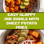 Keywords: Sloppy Joe Bowls, Ground Beef Recipe, Sweet Potato Fries, Easy Dinner, Weeknight Meal