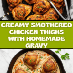 Keywords: smothered chicken thighs, creamy chicken gravy, Southern chicken recipe, bone-in chicken, comfort food chicken
