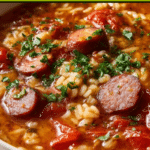 This Spicy Jambalaya Soup is a hearty and flavorful dish combining smoky andouille sausage, tender chicken, and fragrant Cajun spices. Perfect for a cozy dinner, it’s packed with wholesome ingredients and a touch of heat that warms you from the inside out.