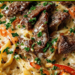 This steak linguine with roasted carrots and parsley combines tender, flavorful beef with sweet, caramelized carrots and a rich garlic butter sauce. It’s a satisfying and simple pasta dish that’s perfect for a weeknight dinner or a special occasion.