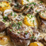 These Steak, Shrimp & Mushroom Loaded Baked Potatoes combine hearty flavors and indulgent ingredients for the perfect comfort food. Crispy-skinned potatoes are filled with tender steak, juicy shrimp, sautéed mushrooms, and melted cheese, making every bite satisfying and delicious.