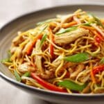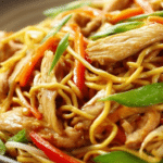 Stir-fried noodles with chicken and vegetables is a vibrant and flavorful dish that’s perfect for a quick and satisfying meal. Packed with tender chicken, crisp vegetables, and a savory sauce, it combines textures and tastes that everyone will love.