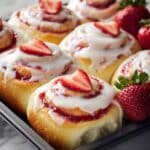 These Strawberry Cheesecake Cinnabon Rolls combine the rich creaminess of cheesecake with warm cinnamon-spiced dough and fresh strawberries. Perfect for a special breakfast or indulgent dessert, they offer a delightful twist on classic cinnamon rolls.