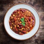 Store leftover chili in an airtight container in the refrigerator for up to 4 days. Reheat gently on the stove or in the microwave, adding a splash of broth if needed to loosen it. This chili freezes well for up to 3 months; thaw overnight in the fridge before reheating.