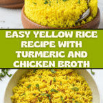 This vibrant and flavorful Yellow Rice recipe is a simple yet delicious side dish made with basmati rice, butter, and a blend of aromatic spices including turmeric, garlic, and paprika. Cooked in chicken broth for a rich taste, this easy-to-make rice pairs perfectly with a variety of meals, delivering a comforting and colorful addition to your table.