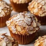 To keep the almond slices crunchy, bake the muffins thoroughly and avoid covering them tightly with plastic wrap when warm. Allow them to cool completely before storing, and if possible, store in a way that allows air circulation, like a container with ventilation.