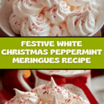 White Christmas Peppermint Meringues are light, airy treats with a refreshing hint of peppermint. These festive confections are perfect for holiday gatherings or as a sweet gift. Their delicate texture and striped appearance make them as beautiful as they are delicious.